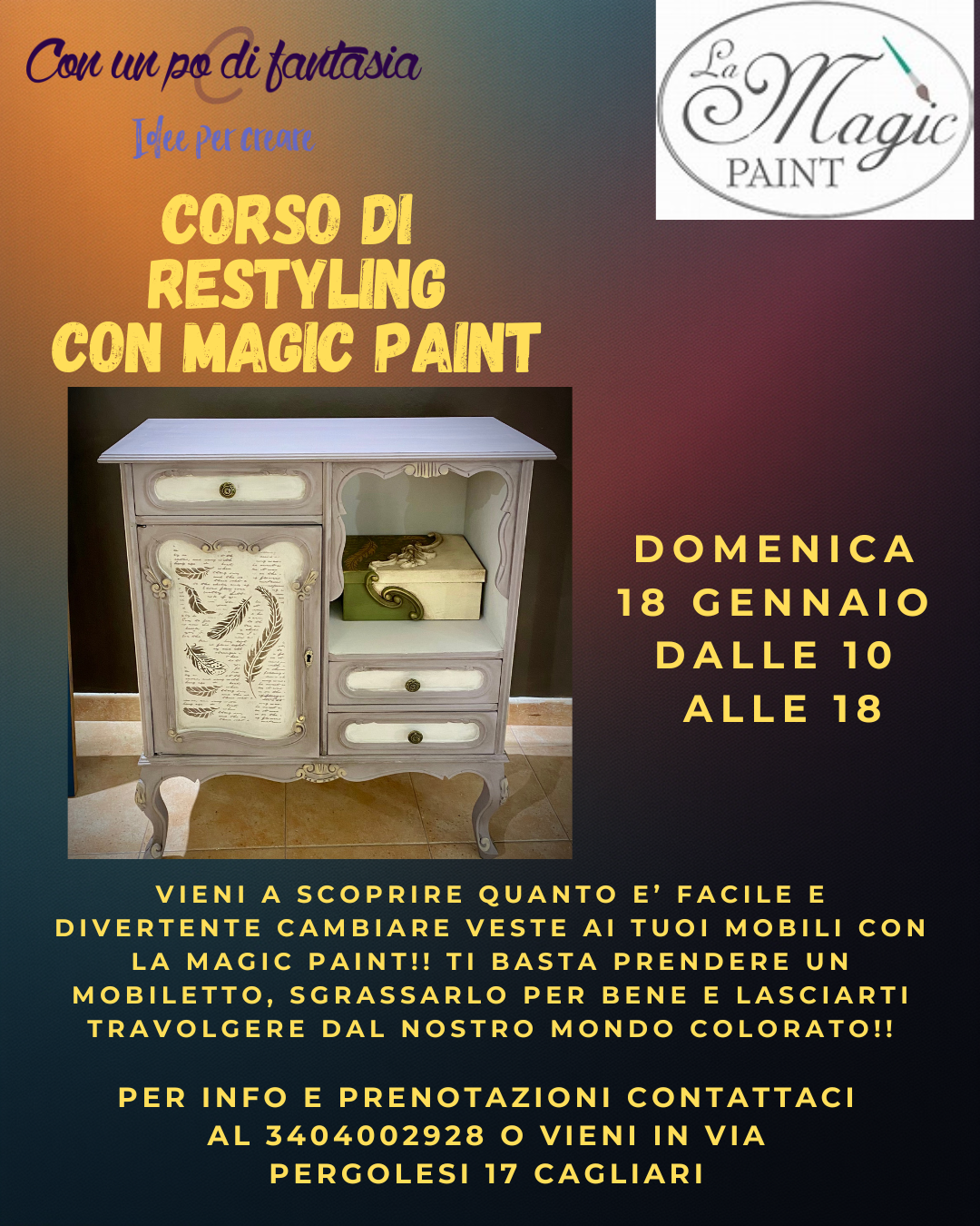 Oltre ai corsi di restyling tenuti dalla titolare Carla Sappia, l'azienda si avvale di tante altre collaboratrici che tengono corsi di: Pittura acrilica, pittura ad olio, corsi di disegno realistico, corsi di Mandala con la tecnica del puntinismo, corsi di scrapbooking e card making, corsi di mix-media e varie tecniche decorative, corsi di cucito creativo per adulti e bambini e tanti laboratori gratuiti.