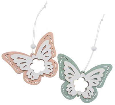 FARFALLA IN LEGNO DA APPENDERE 7,9cm Verde Rosa pastello 2x